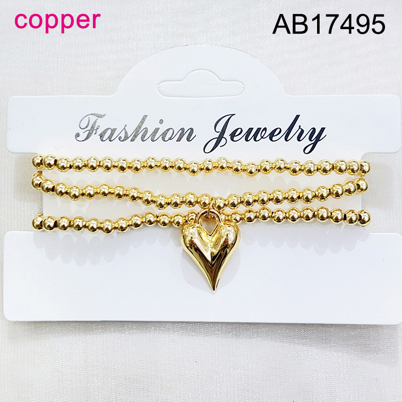 Level B Fashion Jewelry New Trendy Women Jewelry Niche Design Layered Jewelry Round Beads Heart Golden Mother's Day Elastic Bracelet;Material:copper (cobre)