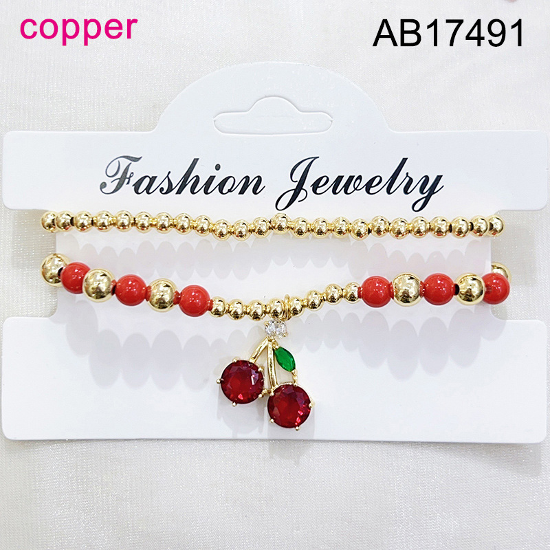 Level B Fashion Jewelry New Trendy Women Jewelry Niche Design Layered Jewelry Round Beads Summer fruit style Cherry Golden Elastic Bracelet;Material:copper (cobre)