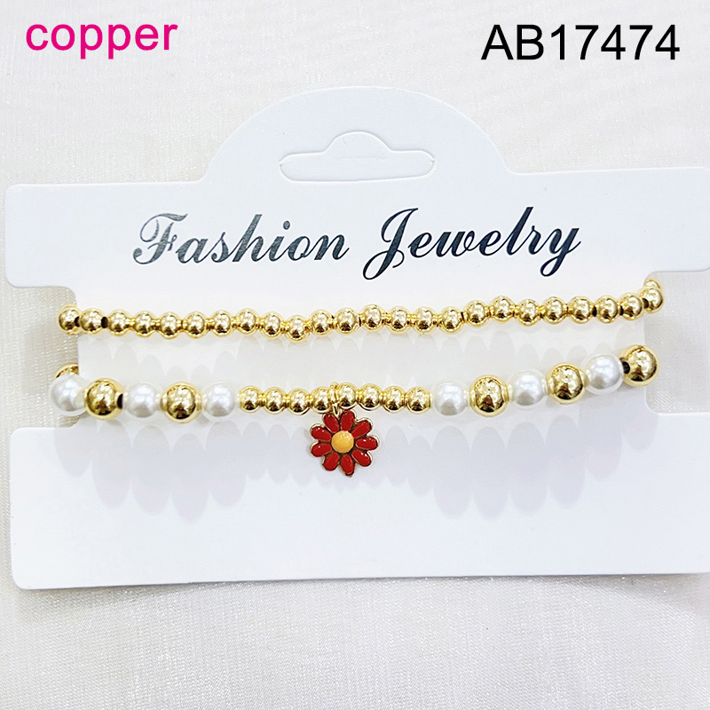 Home > Level B Fashion Jewelry New Trendy Women Jewelry Niche Design Layered Jewelry Pearl Style/Plastic Beads Round Beads Flower Golden Elastic Bracelet;Material:copper (cobre)