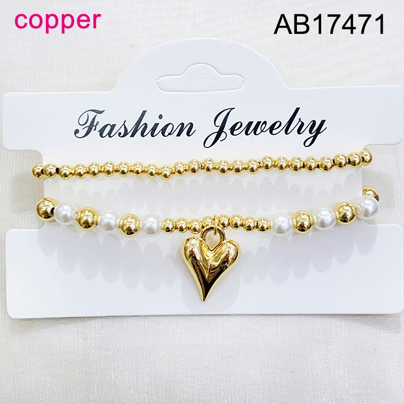 Home > Level B Fashion Jewelry New Trendy Women Jewelry Niche Design Layered Jewelry Pearl Style/Plastic Beads Round Beads Heart Golden Mother's Day Elastic Bracelet;Material:copper (cobre)