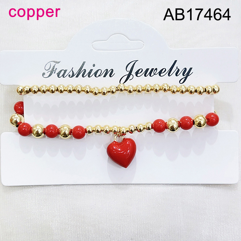 Level B Fashion Jewelry New Trendy Women Jewelry Niche Design Layered Jewelry Round Beads Heart Golden Mother's Day Elastic Bracelet;Material:copper (cobre)