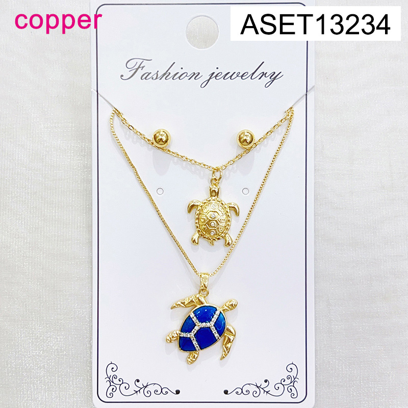 Level B Fashion Jewelry New Trendy Women Jewelry Two Layers Chain Summer beach Animal Turtle Golden SET;Material:copper (cobre)