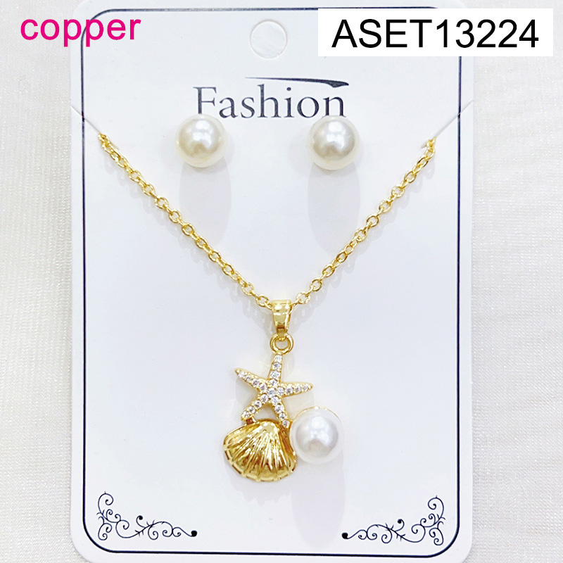 Home > Level B Fashion Jewelry New Trendy Women Jewelry Summer beach Animal Starfish Shell Golden SET;Material:copper (cobre)