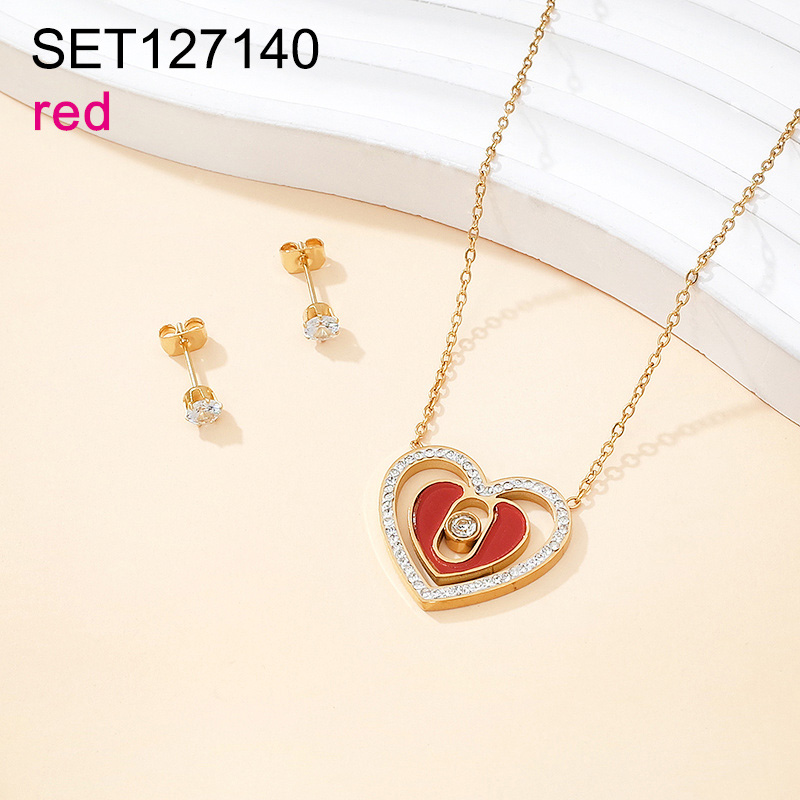 Level B Stainless Steel New Trendy Women Jewelry Heart Golden Valentine's Day SET