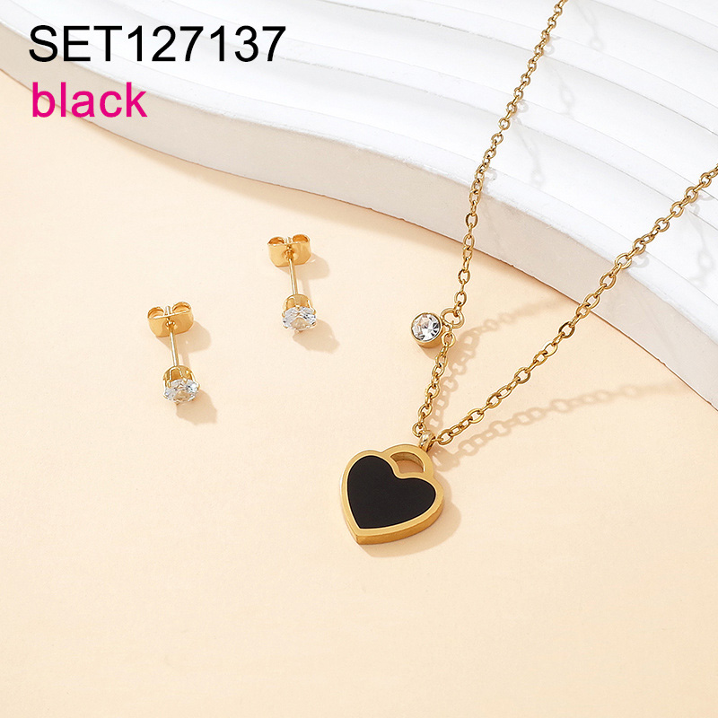 Level B Stainless Steel New Trendy Women Jewelry Heart Golden Valentine's Day SET