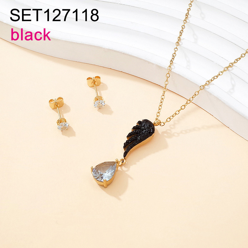 Level B Stainless Steel New Trendy Women Jewelry Animal Wing Water Drip Golden SET