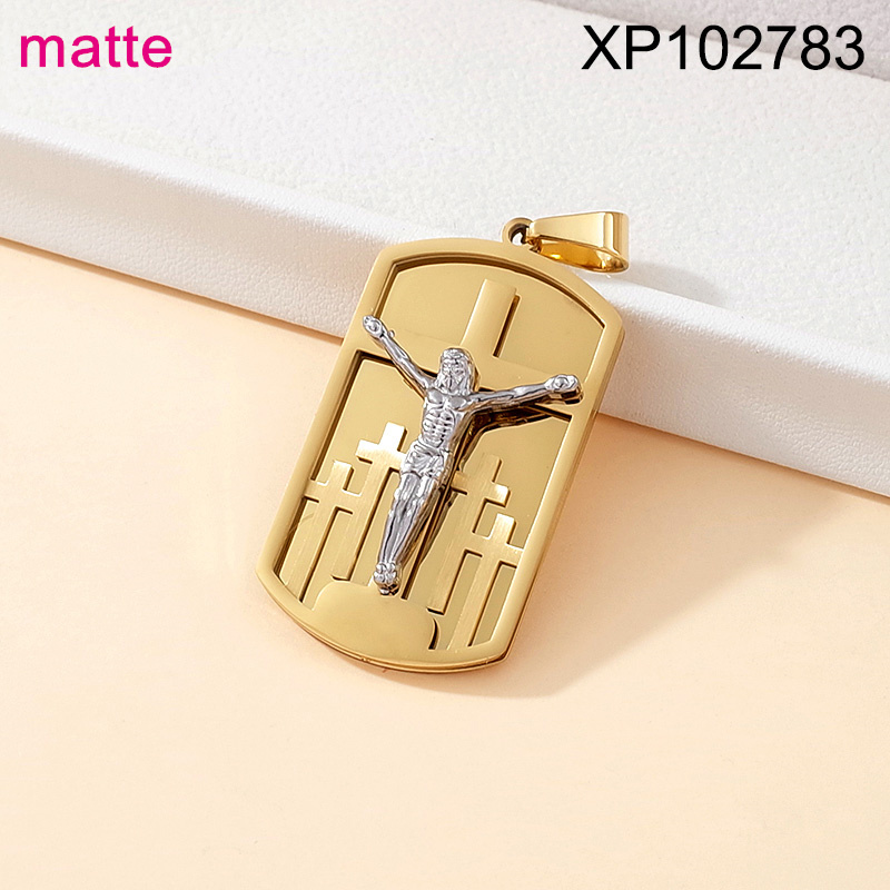 Level B Stainless Steel New Trendy Man Jewelry Jesus Cross Two Tone Matte Pendant
