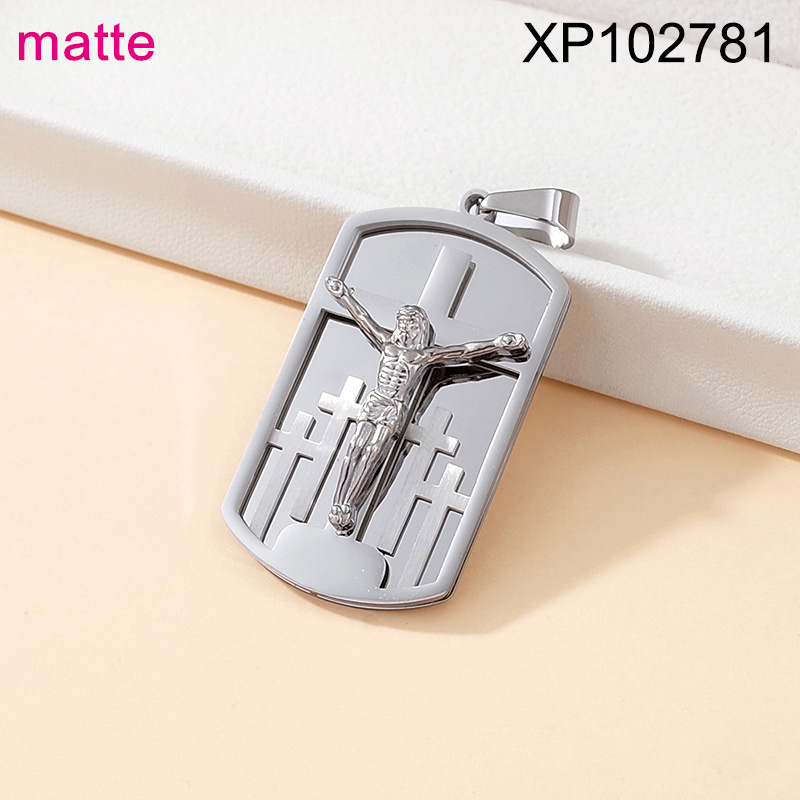 Level B Stainless Steel New Trendy Man Jewelry Jesus Cross Steel color Matte Pendant