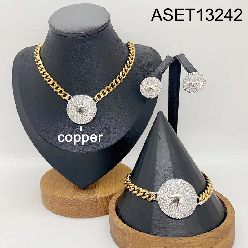 Level B Fashion Jewelry New Trendy Women Jewelry Round Eight-Pointed Star Two Tone 3pcs SET;Material:copper (cobre)