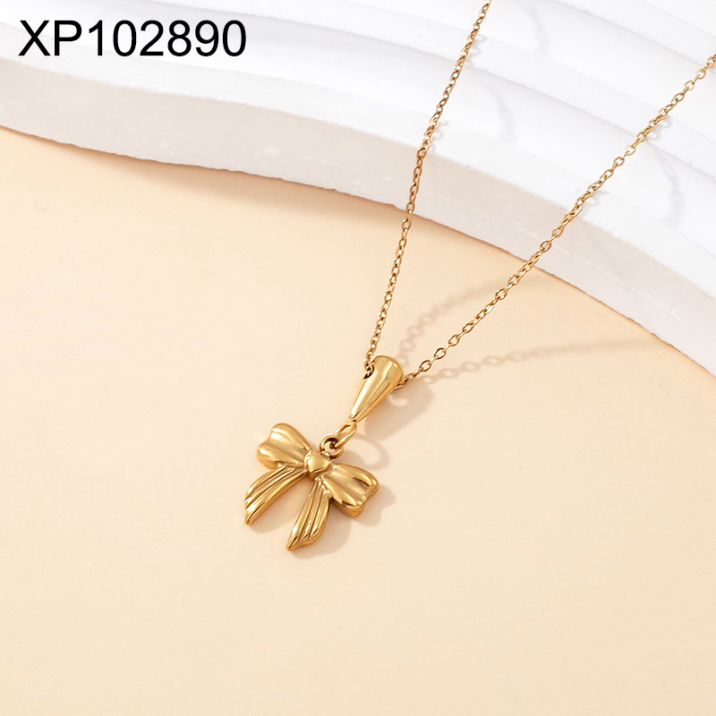 Home > Level B Stainless Steel New Trendy Women Jewelry Bowknot Golden Pendant