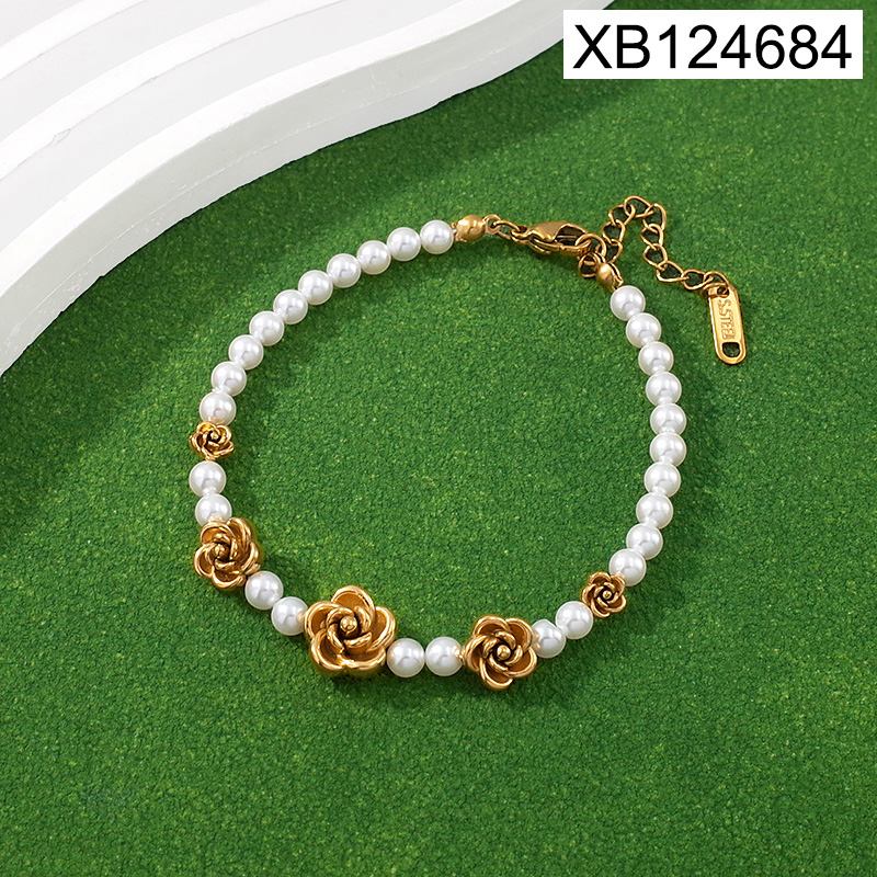 Home > Level B Stainless Steel New Trendy Women Jewelry Pearl Style/Plastic Beads Flower Golden Bracelet