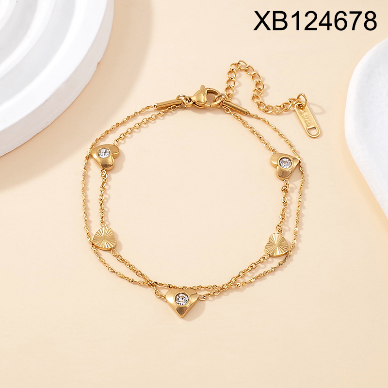 Level B Stainless Steel New Trendy Women Jewelry Two Layers Chain Heart Golden Mother's Day Bracelet