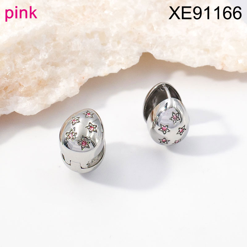 Home > Stainless Steel Women Jewelry New Trendy Water Drip Pink Star Steel color Earring
