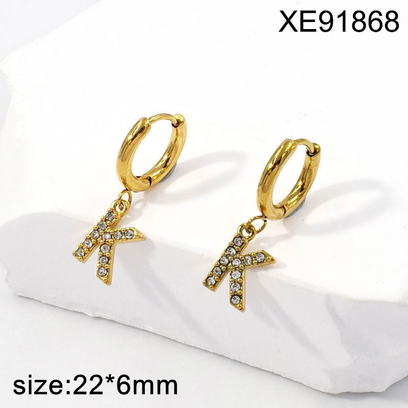 Level B Stainless Steel Jewelry New Trendy Sticky Stone Letter K Golden Hoop Earrings