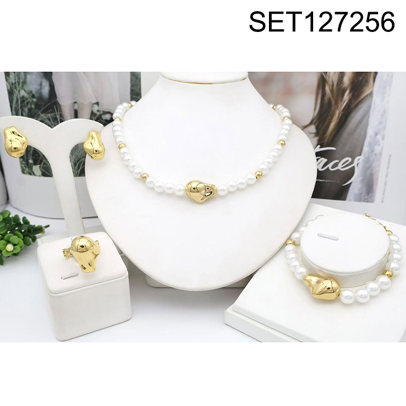 Level B Stainless Steel New Trendy Women Jewelry Pearl Style/Plastic Beads Golden 4pcs SET