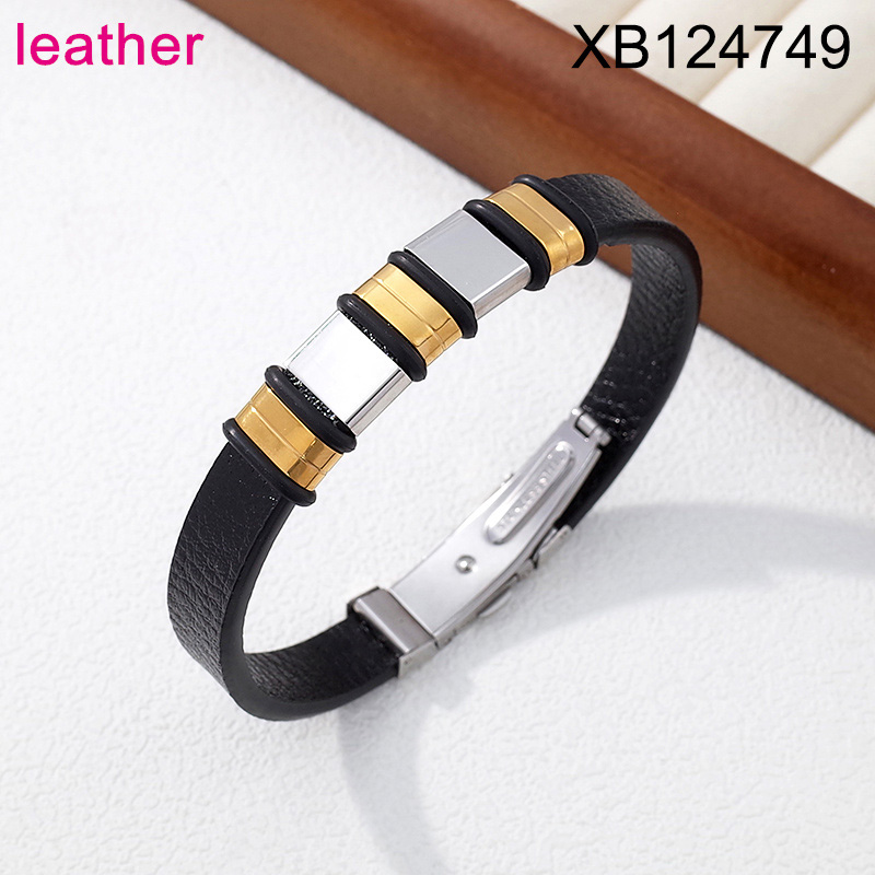Home > Level B Stainless Steel New Trendy Man Jewelry Two Tone Leather Bracelet