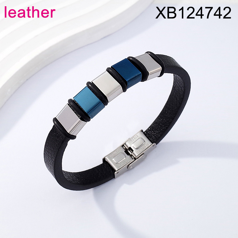 Home > Level B Stainless Steel New Trendy Man Jewelry Two Tone Leather Bracelet