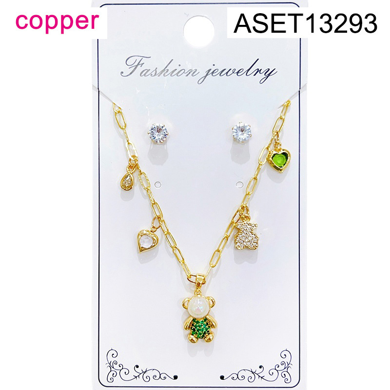 Level B Fashion Jewelry New Trendy Women Jewelry Animal Bear Heart Golden SET;Material:copper (cobre)
