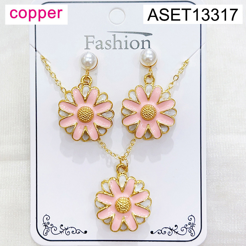 Level B Fashion Jewelry New Trendy Women Jewelry Drip Oil/Enamel Flower Golden SET;Material:copper (cobre)