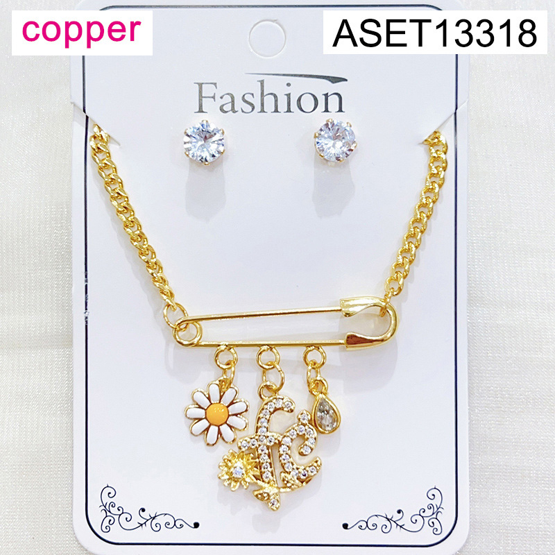 Home > Level B Fashion Jewelry New Trendy Women Jewelry Pin Flower Letter Golden SET;Material:copper (cobre)
