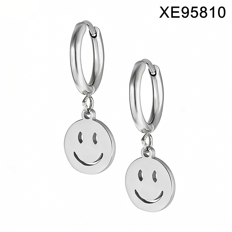 Home > Level B Stainless Steel New Trendy Women Jewelry Smiling face Steel color Hoop Earrings