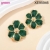 Level B Stainless Steel New Trendy Women Jewelry Drip Oil/Enamel Green Flower Golden Earrings