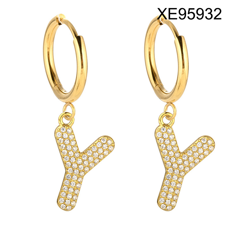Home > Level B Stainless Steel New Trendy Women Jewelry Letter Y Golden Hoop Earrings