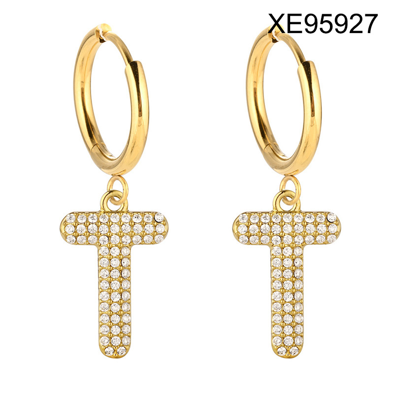 Home > Level B Stainless Steel New Trendy Women Jewelry Letter T Golden Hoop Earrings