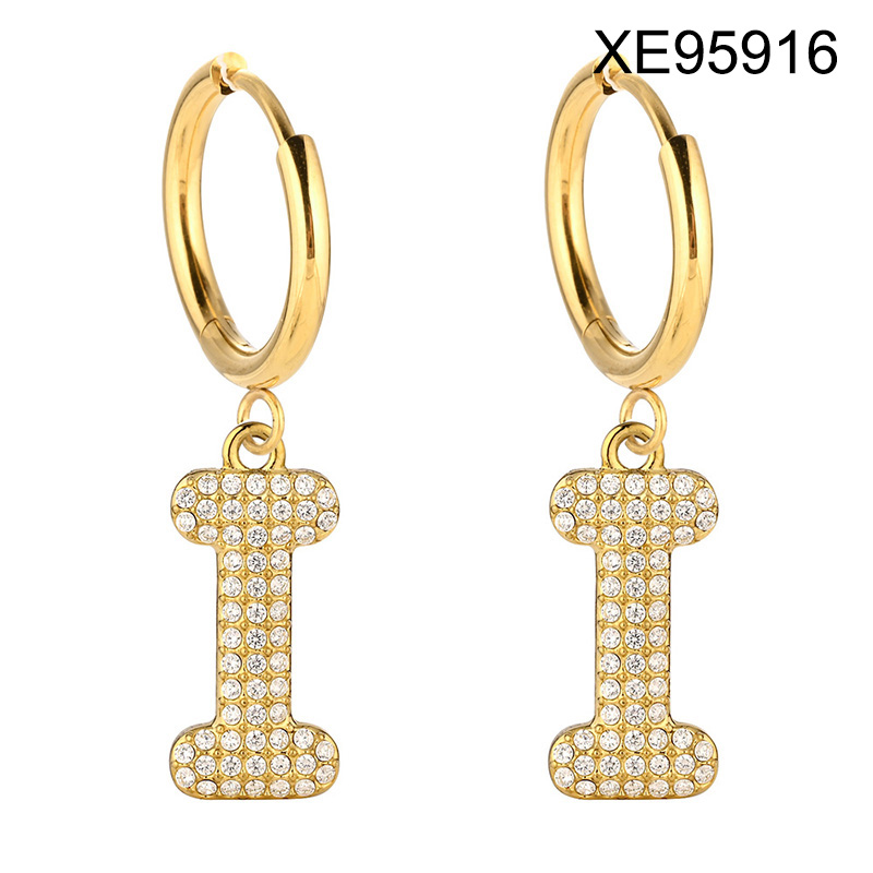 Home > Level B Stainless Steel New Trendy Women Jewelry Letter I Golden Hoop Earrings