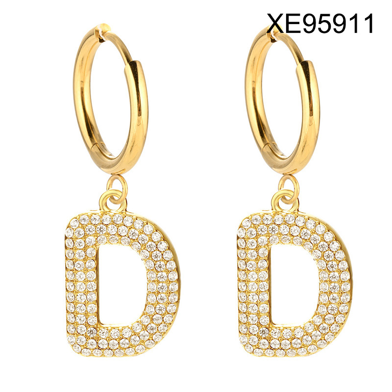 Level B Stainless Steel New Trendy Women Jewelry Letter D Golden Hoop Earrings