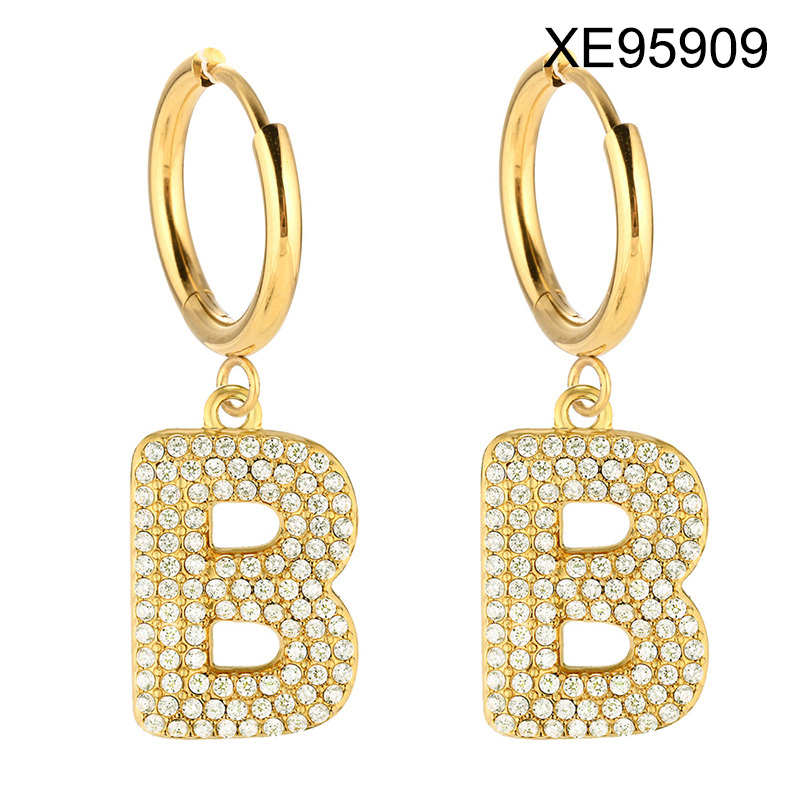 Level B Stainless Steel New Trendy Women Jewelry Letter B Golden Hoop Earrings
