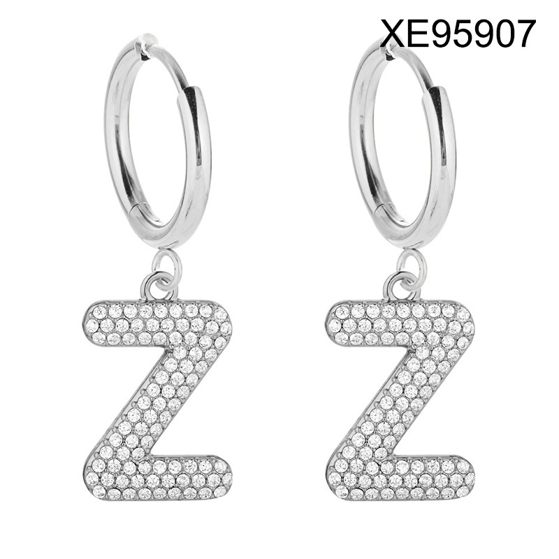 Home > Level B Stainless Steel New Trendy Women Jewelry Letter Z Steel color Hoop Earrings