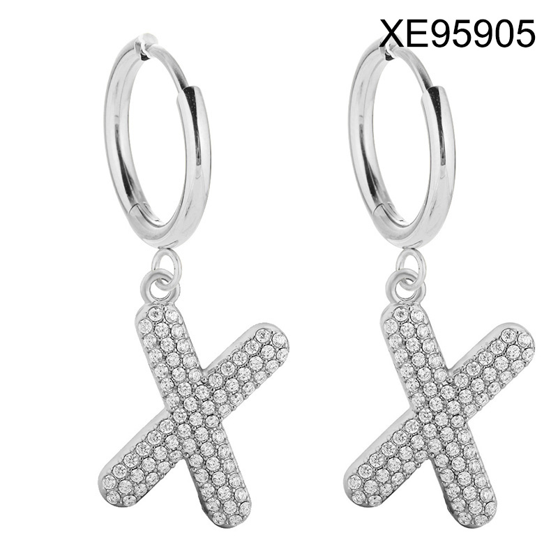 Home > Level B Stainless Steel New Trendy Women Jewelry Letter X Steel color Hoop Earrings