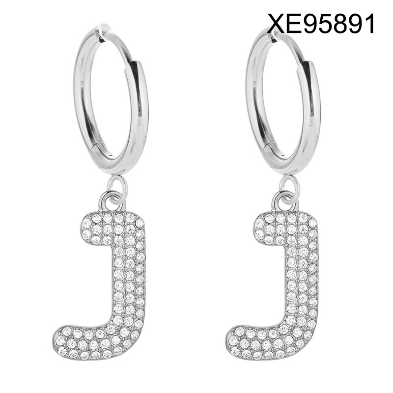 Home > Level B Stainless Steel New Trendy Women Jewelry Letter J Steel color Hoop Earrings