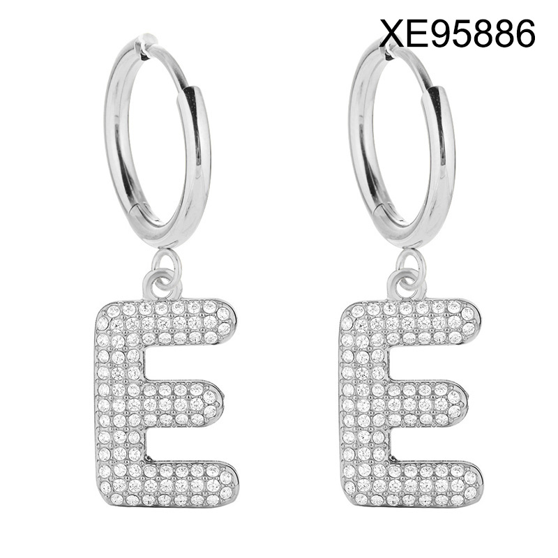 Home > Level B Stainless Steel New Trendy Women Jewelry Letter E Steel color Hoop Earrings