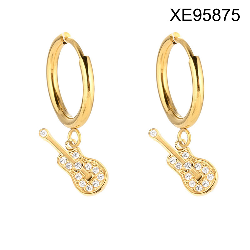 Level B Stainless Steel New Trendy Women Jewelry Guitar Golden Hoop Earrings