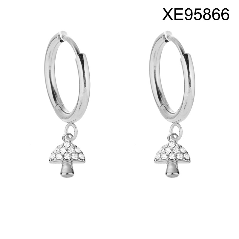 Home > Level B Stainless Steel New Trendy Women Jewelry Mushroom Steel color Hoop Earrings