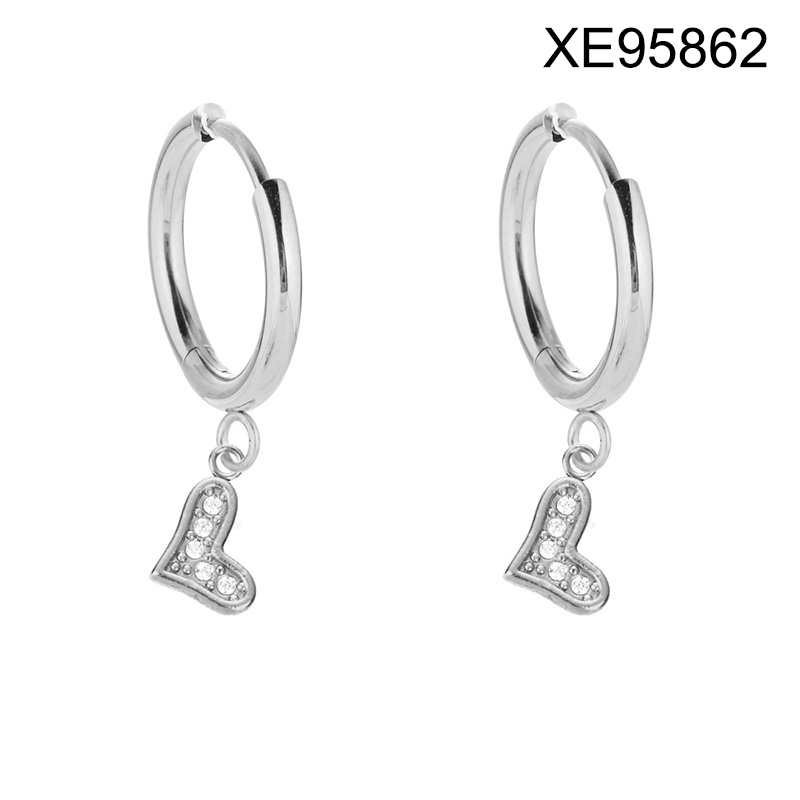 Home > Level B Stainless Steel New Trendy Women Jewelry Heart Steel color Mother's Day Hoop Earrings