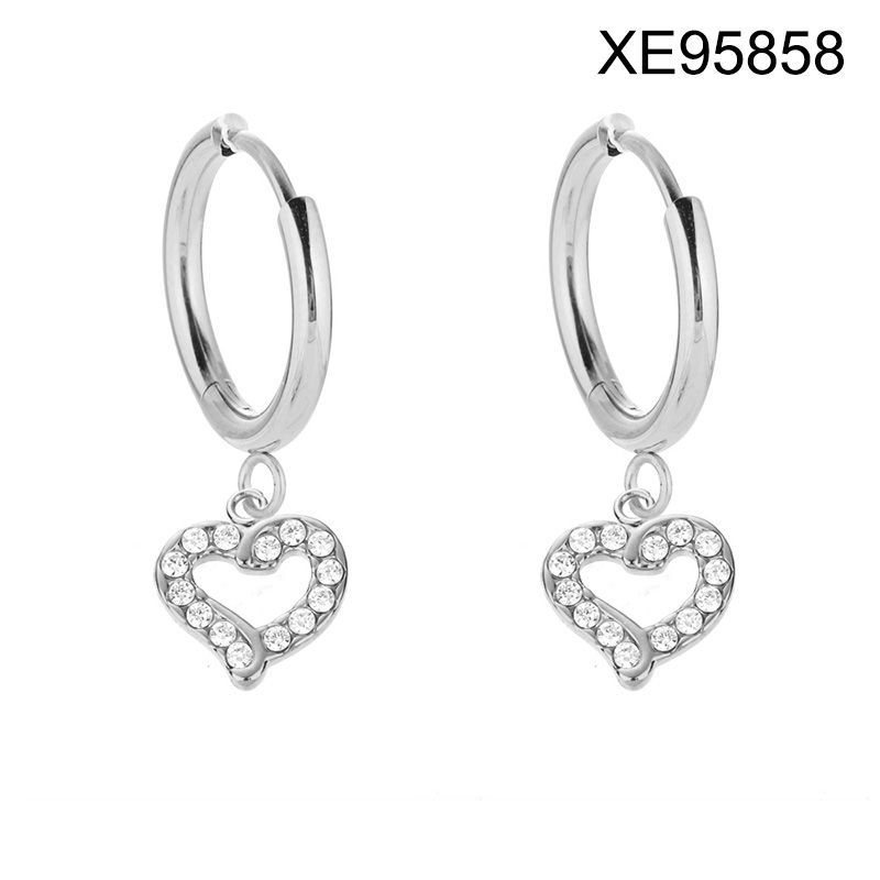 Home > Level B Stainless Steel New Trendy Women Jewelry Heart Steel color Mother's Day Hoop Earrings