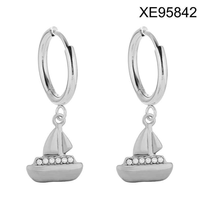 Home > Level B Stainless Steel New Trendy Women Jewelry Sailboat Steel color Hoop Earrings