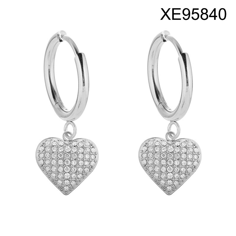 Home > Level B Stainless Steel New Trendy Women Jewelry Heart Steel color Mother's Day Hoop Earrings