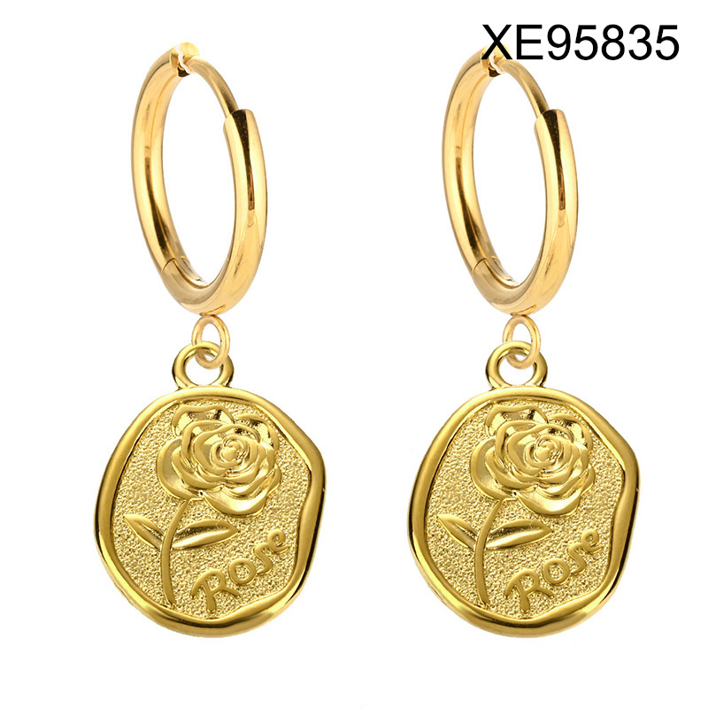 Level B Stainless Steel New Trendy Women Jewelry Flower Golden Hoop Earrings