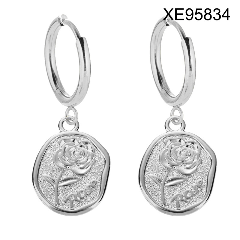 Home > Level B Stainless Steel New Trendy Women Jewelry Flower Steel color Hoop Earrings
