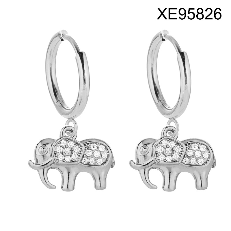 Level B Stainless Steel New Trendy Women Jewelry Animal Elephant Steel color Hoop Earrings