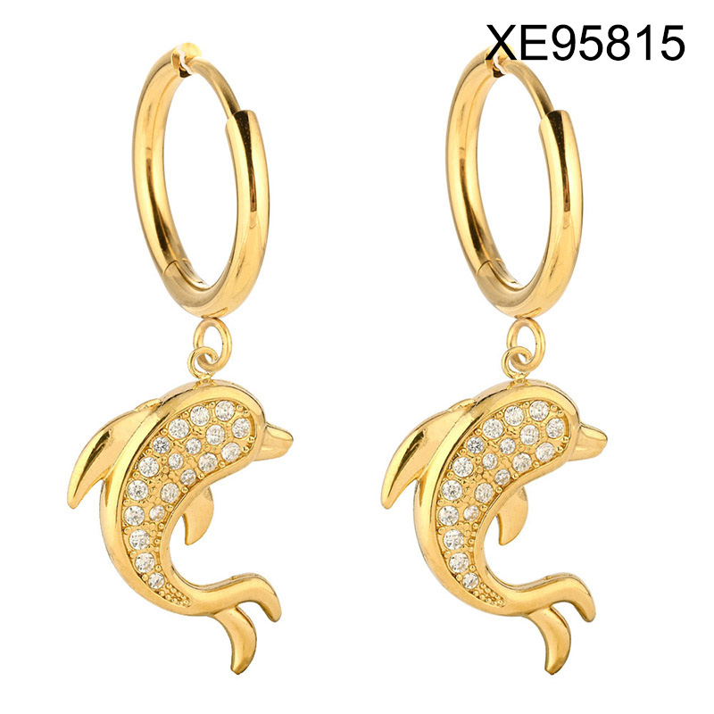 Home > Level B Stainless Steel New Trendy Women Jewelry Summer beach Animal Dolphin Golden Hoop Earrings