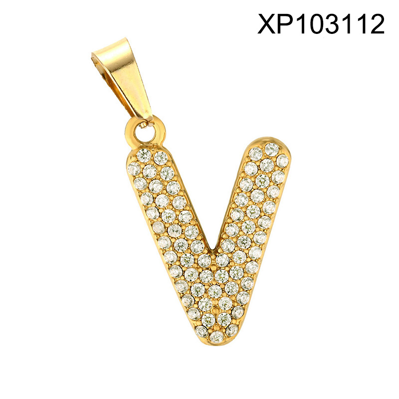 Level B Stainless Steel New Trendy Women Jewelry Letter V Golden Pendant
