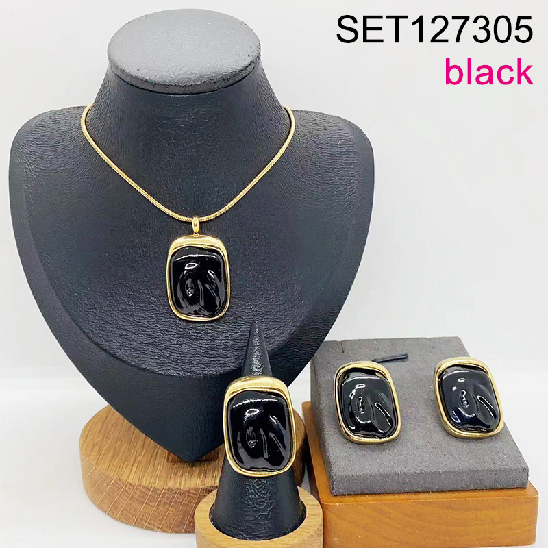 Level B Stainless Steel New Trendy Women Jewelry Rectangle Golden 3pcs SET