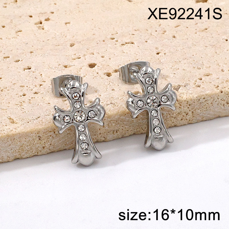 Home > Level A Stainless Steel Jewelry New Trendy Sticky Stone Cross Earrings
