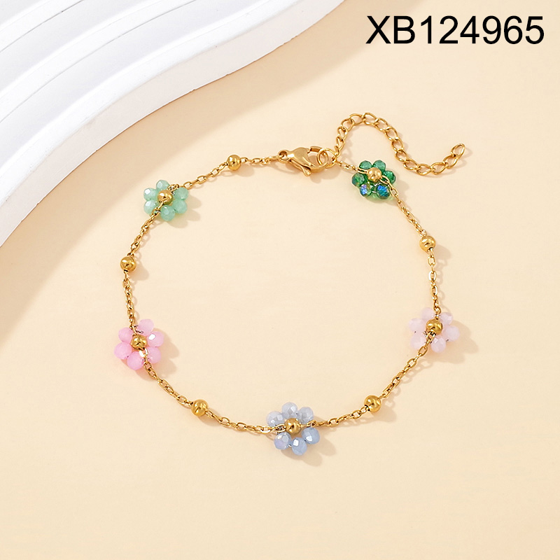Home > Level B Stainless Steel New Trendy Women Jewelry Mixed color Flower Golden Bracelet