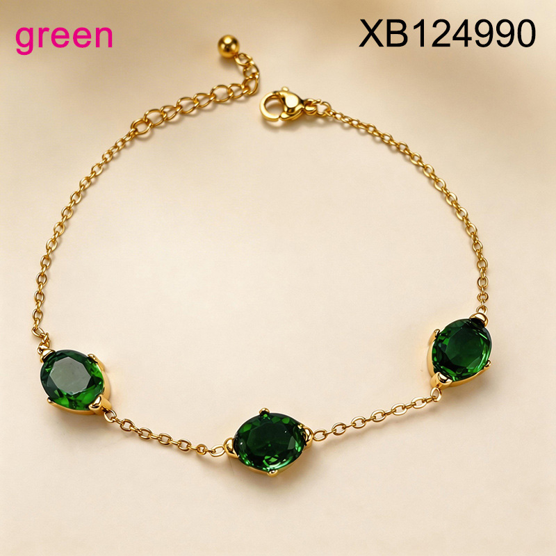 Level B Stainless Steel New Trendy Women Jewelry Oval Green Crystal zirconium Golden Bracelet